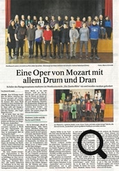 Ganz bewusst habe ich alle Schüler singen lassen. Wir sind kein Musikgymnasium. Die Kinder haben durch Mozarts Musik zu singen gelernt, jedes Kind nach seinen Möglichkeiten. Erwarten Sie bitte keine Chorqualität, dafür frische Kinderstimmen, die auch komplizierte Melodieverläufe wie die aus der „Arie der Königin der Nacht“ mit Inbrunst in ihrer (transponierten) Stimmlage schmetterten.