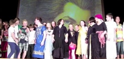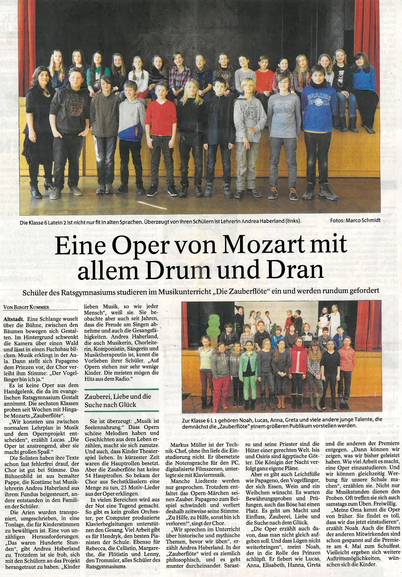 Ganz bewusst habe ich alle Schüler singen lassen. Wir sind kein Musikgymnasium. Die Kinder haben durch Mozarts Musik zu singen gelernt, jedes Kind nach seinen Möglichkeiten. Erwarten Sie bitte keine Chorqualität, dafür frische Kinderstimmen, die auch komplizierte Melodieverläufe wie die aus der „Arie der Königin der Nacht“ mit Inbrunst in ihrer (transponierten) Stimmlage schmetterten.