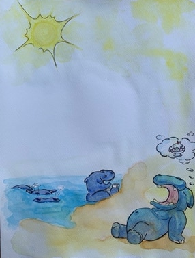 und die Nilpferdfrau mit einer Seekuh klatscht,