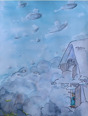 Mann und Kind und Wolkenfrau schieben sich vor ́s Himmelsblau,